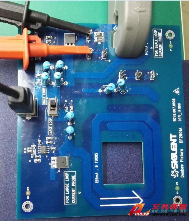 5)將電壓和電流探頭分別連接到示波器CH1和CH2通道。