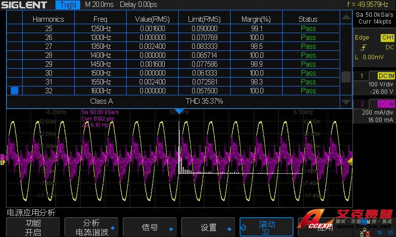 我們通過(guò)測(cè)試功率和分析諧波來(lái)展示SDS2000X的電源分析功能。